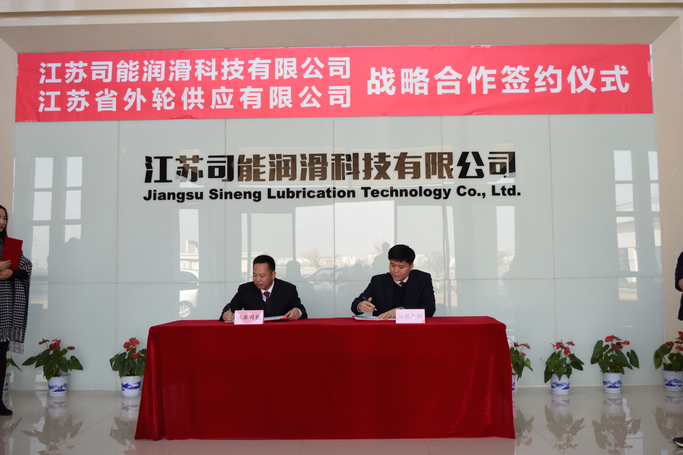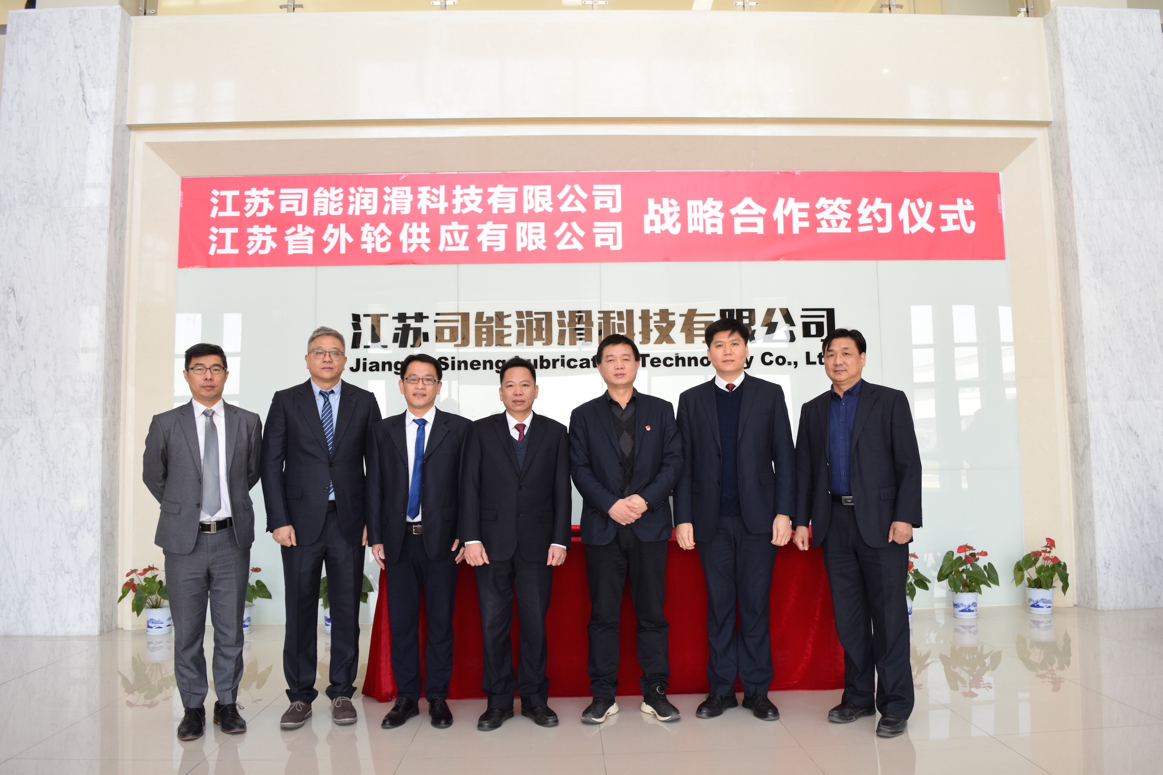 2021年1月12日上午,江蘇司能潤(rùn)滑科技有限公司與江蘇省外輪供應(yīng)有限公司正式簽訂戰(zhàn)略合作協(xié)議,雙方將共同推動(dòng)潤(rùn)滑油在港口機(jī)械和船舶領(lǐng)域的全面發(fā)展。司能石油化工有限公司常務(wù)副總、江蘇司能潤(rùn)滑科技有限公司總經(jīng)理吳土金,司能石油化工有限公司副總經(jīng)理、總工程師吳憲,江蘇省外輪供應(yīng)有限公司董事長(zhǎng)、總經(jīng)理孫繼強(qiáng),副總經(jīng)理沈永保等領(lǐng)導(dǎo)嘉賓出席了簽約儀式。